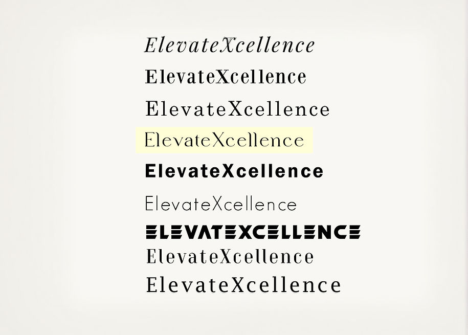 Conceptual focus: The designs heavily incorporate the letters "E" and "X", playing with their shapes and combinations to represent "Elevate" and "Excellence".